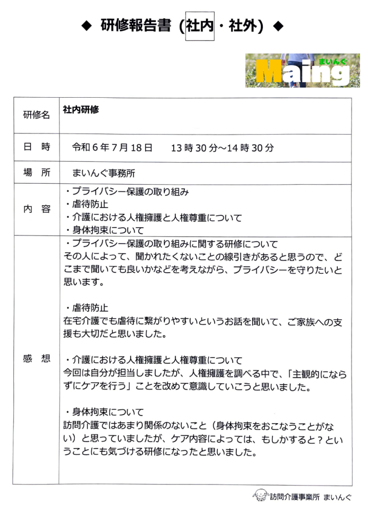 • 具体的な行動を通じて、利用者も職員も安心できる環境を築こう