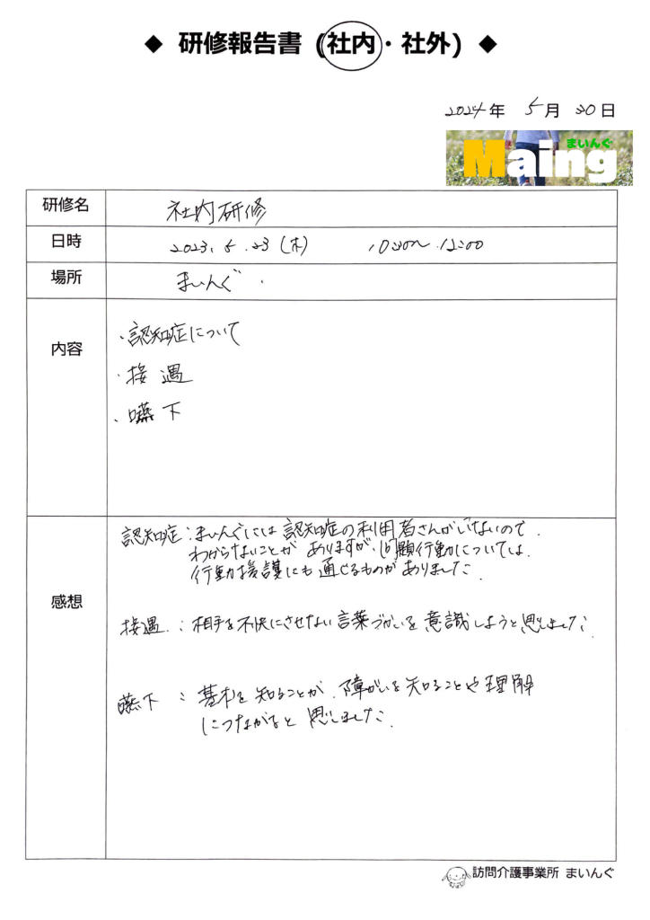• 研修で学んだ内容の確認と現場での活用方法を話し合う