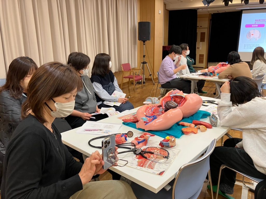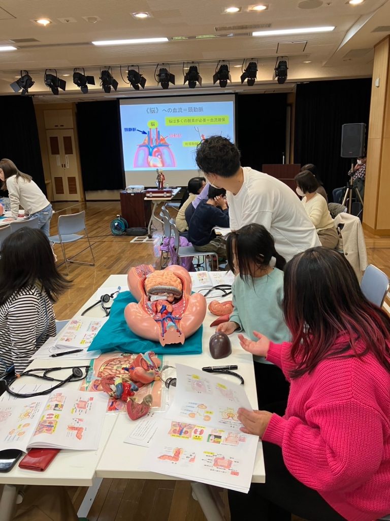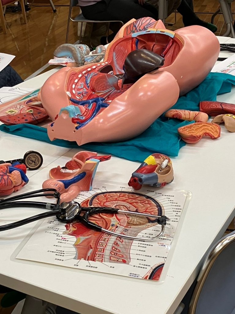 普段では絶対に聞けないような体の知識を、人体模型を見て触って学ぶ、たいへん有意義な時間を過ごせました。